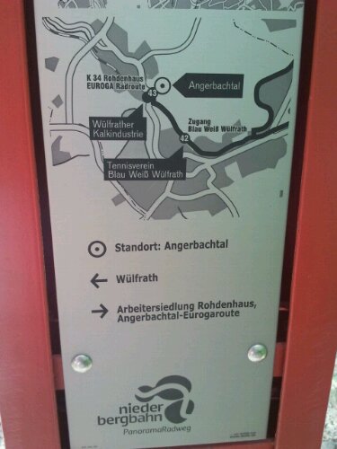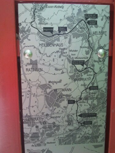 Ich war absolut enttäuscht von mir und meinen Beinen, aber trotzdem ging es auf der anderen Seite wieder runter nach Langenberg. Nur um auf dem gegenüberliegenden Hang die Wilhelmshöher Straße in Angriff zu nehmen. Um es abzukürzen, auch hier quälte ich mich gähnend langsam den Berg hinauf…… nur um oben direkt von einem Jungspund auf der Geraden stehen gelassen zu werden…. Danke….. jetzt reichts…… Völlig unmotiviert trottete ich vor mich hin in Richtung Velbert. Ich wollte nur nach Hause…. Irgendwie…… An einer Ampel sah ich dann ein Hinweisschild für den „Niederbergbahn Panoramaradweg“ Das ist jetzt genau das Richtige….. Also links ab und locker über den Radweg bis kurz vor Flandersbach…… Da wollte ich eh hin 😉