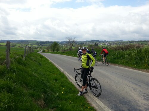 Weiter ging es durch den Wald von Burnontige über einen weiteren langen namenlosen Anstieg Richtung Werbomont, ehe uns eine schöne Abfahrt in´s Tal der La Lienne und zum nächsten Anstieg brachte. Der zweitlängste Berg des Tages, der L´Ancienne Barriere gehört zur leichteren Sorte. 4800 m, Max 6 mit durchschnittlich 4,7 % ließen sich gut raufkurbeln. Aber der schleichende Prozess des „Körner aus dem Körper holen“ setzte sich fort. Und das nach gerade mal 65 Km. Ich war mit mir und meinen Beinen überhaupt nicht zufrieden. Eigentlich war ich sogar enttäuscht von mir. Machten sich hier die fehlenden Höhenmeter und damit verbundene fehlende Härte bemerkbar ????