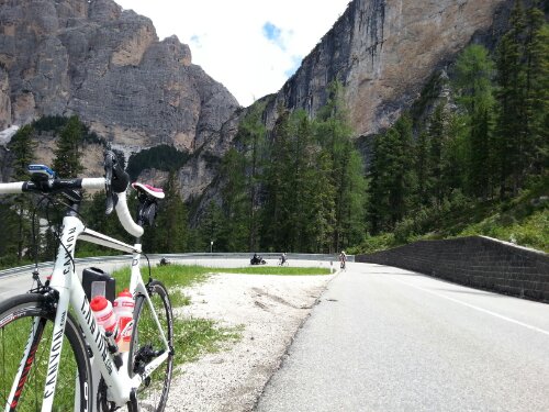 Nach dem Frühstück fuhren Fitty und ich als Warmup schon mal ein Stück den Campolongo rauf, um die Wartezeit auf die Vigo Urlauber zu verkürzen 😉