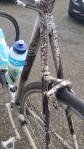 So ging es um 9:15 Uhr los. Da die Straßen noch nass waren, fiel die Entscheidung natürlich auf Fausto. Er liebt das leicht schmuddelige Wetter und hat entsprechend viel Erfahrung vorzuweisen. Flache 4 Stunden standen auf dem Zettel und so ging es auf altbekannten Pfaden bis kurz vor Schloß Heltorf. Durch den sehr hilfreichen Schiebewind ging der gesamte Abschnitt recht locker von der Hand. Das sich das heute noch deutlich ändern würde war klar. Ich sah jetzt schon aus wie ein kleines Schweinchen, aber Spaß hatte ich trotzdem. Wittgatt, Grenz und Kalkumer Weg brachten mich zurück nach Kalkum. Die erste Schleife war abgespult und jetzt ging es weiter in Richtung Rhein. Hier zeigte mir der Wind erstmalig für einen kurzen Augenblick seine Zähne. Aber ich blieb zunächst noch locker 🙂 An der Flughafenbrücke ging es auf die andere Rheinseite und dort erst einmal über den Deich bis kurz vor Uerdingen. Rückenwind. Geil. Das bedeutete aber auch: Gleich ist Schluß mit lustig. Der Wendepunkt kurz vor dem Hafen war schnell erreicht und nun ging es über die Stratumer Straße gen Nierst. Der Rhein Kreis Neuss zeigte sich von seiner biestigen Seite. Deutlicher Gegenwind fordete ein schnelle Entscheidung von mir. Den Blick weiter auf den Puls richten und Gefahr laufen rückwärts zu fahren, oder einen halbwegs brauchbaren Rhythmus suchen und diesen versuchen beizuhalten ??? Ich entschied mich für den Rhythmus und kurbelte dem Wind entgegen. Über Nierst ging es nach Langst Kierst. Dort machte ich einen Schlenker nach Lank Latum, der zwischenzeitlich für etwas Entlastung der Beine sorgte. Zwar nur kurz, aber umso schöner 😉 In Ilverich hatte mich der Wind längst wieder und tat sein Bestes, mich am Weiterkommen zu hindern. Klappte aber nicht so richtig……