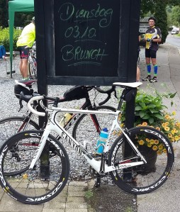 Unverhofft kommt oft !!!! So auch die Teilnahme an der bekannten RTF des RSV Rath/Ratingen. Pit hatte mich Freitag nachmittag kontaktiert und sich nach meiner Lust erkundigt 😉 Lust war da, aber schon wieder eine Reihe von Terminen. Mit Jasmin´s Hilfe gelang es mir, ein Zeitfenster für den Samstag vormittag zu generieren und so traf ich mich mit Pit in Lintorf am Standort. 10 Uhr ging es mit bangem Blick nach oben los. Wie vereinbart auf die 70er Runde. Da waren wir uns einig, da beide in den letzten Wochen !!!! nicht wirklich geradelt sind. Entspannt ging es los. Locker kurbelnd und genauso quasselnd rollten wir dahin. In Angermund bekamen wir als Addon noch einen kurzen Regenschauer ab, der uns kurzzeitig an unserem Vorhaben zweifeln ließ….. aber nur kurz….. Der Regen verzog sich genauso schnell wie er gekommen war, was blieb war der unangenehme Wind, der phasenweise recht heftig bließ. Für die Cosmics von Gino genau richtig 😉