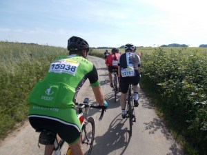 Kurz nach dem Start fand ich mich direkt in einer Gruppe wieder, die so ganz nach meinem Geschmack war. Ruhiges gemeinsames Fahren, ohne Stress und Hektik. Bis zum ersten offiziellen Helling nach 24 Km -Terstraten- ging es aber auch schon sehr wellig dahin. Anstiege bis 6 oder 7 % waren keine Seltenheit. Auch wenn nur wenige Meter lang, fing bereits hier das eigentliche Drama an. Nur merkte ich in dieser frühen Phase noch nichts davon. Wir rollten durch mir unbekannte Regionen, die mir mal wieder bestätigten, wie toll sich diese Region zum radeln eignet. Die Gruppe fuhr diszipliniert über jeden Radweg, aber auch abseits der Hauptstraßen änderte sich dieses Verhalten nicht. Ich fühlte mich sicher, merkte aber mit jedem Hm, dass irgendetwas nicht passte. Fühzeitiges Trinken war nicht das Problem, Essen auch nicht, selbst an Salztabletten habe ich später noch gedacht. Ich hatten keinerlei Idee woran es liegen könnte. Am Terstraten und auch später am Visweg spürte ich bereits ein wenig die fehlende Kraft. Bloß keinen Gedanken daran verschwenden, schoß es mir durch den Kopf. An der Verpflegung in Meersen, 2 Km später, waren die Gedanken schon wieder ausgeblendet. Rosinenmürbchen, Apfel, Banane, Orange, Müsliriegel und Keks füllten ein wenig den Magen und schon ging es weiter. Meine Laune war urplötzlich wieder gut, ganz im Gegensatz zu meinem Empfinden.