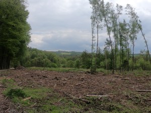 Pünktlich zum Start öffnete Petrus noch einmal kurz die Schleusen, dann ging es los. Ich wollte endlich mal bis Schloß Landsberg fahren. So wählte ich mehr oder weniger den direkten Weg entlang der Bahnlinie Hösel – Kettwig. In der Umgebung des Schloßes wurde das Gelände recht ruppig. Extrem steil, sowohl Down als auch Uphill. Teilweise musste ich schiebend den Weg hoch staksen. Am entferntesten Punkt der Strecke gesellte sich auch noch ein kräftiger Schauer hinzu, sodaß ich mir phasenweise wie ein begossener Pudel vorkam. Ich erreichte wieder für mich fahrbares Gelände und rollte durch den Wald zurück gen Hösel. Da sich das Wetter wieder beruhigt hatte, baute ich noch eine schöne Schleife durch den Hinkesforst ein. Ich muss sagen, mit jeder Fahrt gefällt es mir immer mehr. Das Cruisen durch die Gegend macht mir wirklich Spaß. Auch wenn sich ein weiterer kurzer Schauer niedermachte, tat dies meiner guten Laune keinen Abbruch mehr. Dann hieß es: Ab gen Heimat. Der Blick nach oben gab die Richtung vor. Schnellstmöglich, um nicht noch einmal nass zu werden. Klappte prima und nach 50 Km war ich wieder A La Casa. Schloß Landsberg