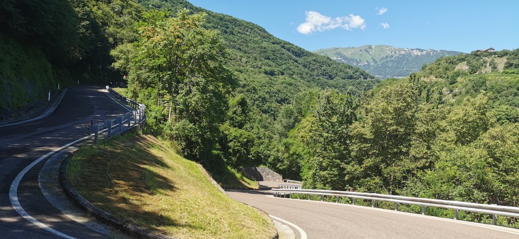 Zweite Tour, zweite Unbekannte. Das waren die heutigen Voraussetzungen des Tages. Dazu viel Sonne und leider auch wieder böiger Wind. Nach dem Frühstück ging es direkt los. Als Warmup zunächst einmal über den Passo San Giovanni. Nix wildes, aber als Kaltstart nicht zu verachten. Hier fiel der gleich der enorme Stau auf der Hauptstraße auf. Die Massen strömen zum Gardasee und somit dürfte es zunächst einmal mit der Ruhe vorbei sein.