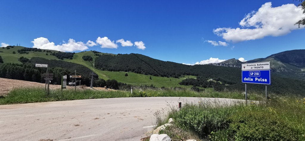 Mit einem Italiener im Windschatten rollte ich durch Mori und weiter ins Etschtal zum Radweg. Das kurze Stück bis nach Chizzola rollte ich entspannt vor mich hin, auch um Kraft zu sparen. Der Ort war schnell erreicht und jetzt betrat ich Neuland. Einzig die Richtung war mir bekannt und das das Skigebiet Polsa ca 1250m hoch lag. Der Abzweig war schnell gefunden und schon nach wenigen Metern empfing mich ein Schild 13% Steigung. Diese setze auch sofort ein und gönnte mir auf den nächsten Km lediglich kurzzeitig bei 9% mal etwas Erholung 😒 Es lief wirklich sehr zäh. Ich merkte auch später noch, das mir die zweistelligen, langen Anstiege nicht mehr so liegen.