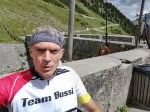 Wir folgten den Schildern immer weiter und erreichten nach 39 Km Prad. Der Startort des legendären Anstieges war erreicht. Kurze Gelpause und los gings. 24,6 Km mit 1844 Hm lagen vor uns. Zunächst ging es entlang des Suldenbaches. Leicht geschlängelter Straßenverlauf brachte uns nach Gomagoi und von dort mit noch humaner Steigung weiter entlang des Trafoier Baches. Bereits hier deutete sich an, was uns den gesamten Aufstieg begleiten sollte. Unmengen von KfZ und Motorrädern. Noch gelang es mir sie auszublenden, was aber im späteren Verlauf bei zunehmender Müdigkeit auch mir nicht mehr gelang. Fabian blieb zunächst noch in meiner Nähe und gemeinsam erreichten wir Kehre 48 und 47. Der Spaß begann. Kurz darauf machten wir in Trafoi einen Foto und Getränkestop. 1 min später ging es weiter und langsam entschwand Fabian aus meinen Augen. Kehre um Kehre ging es den Berg hinauf. In diesem bewaldeten Abschnitt eröffneten sich zwischendurch immer wieder großartige Aus, Tief und Rückblicke. Der Ortler zum Greifen nahe schwitze ich wie selten zuvor beim Radeln. Die Pullen am Rad neigten sich langsam dem Ende und ich war noch lange nicht oben. Mittlerweile hatte ich den Wald hinter mir gelassen und genoss das Hochgebirgspanorama. 20 Kehren hatte ich bereits erklommen, als langsam die Franzenshöhe auf 2188m Höhe ins Blickfeld rückte. Meine Rettung in Bezug auf Flüssigkeit. Kurze Zeit darauf steuerte ich die Terrasse an, bestellte 2 Liter Getränke und informierte Fabian per Whattsapp. 10 min später machte ich mich an die spektakulären letzten 6 Km. Meine Zuversicht erhielt einige Höhenmeter und Kehren später einen ordentlichen Dämpfer. Krampfansätze:-( In Kehre 17 ging dann nix mehr. Pause! Salztabletten rein, etwas Dehnen und vorsichtig weiter. Es gelang mir mittels Stretching während des Wiegetritts tatsächlich einigermaßen vorwärts zu kommen. So oft wie möglich lenkte ich mich durch das grandiose Panorama ab. Es war wirklich unfassbar schön. In Kehre 1 sah ich Fabian stehen und wusste, jetzt hast du es gleich geschafft. Der höchste Rummelplatz Europas war erreicht und machte seinem Namen alle Ehre. Salztabletten rein und bloß weg hier, waren wir uns einig. Die lange Abfahrt über den Umbrailpass hinab in die Schweiz stand. Unter dem Motto Safety First fuhren wir entspannt die 16 km hinunter.