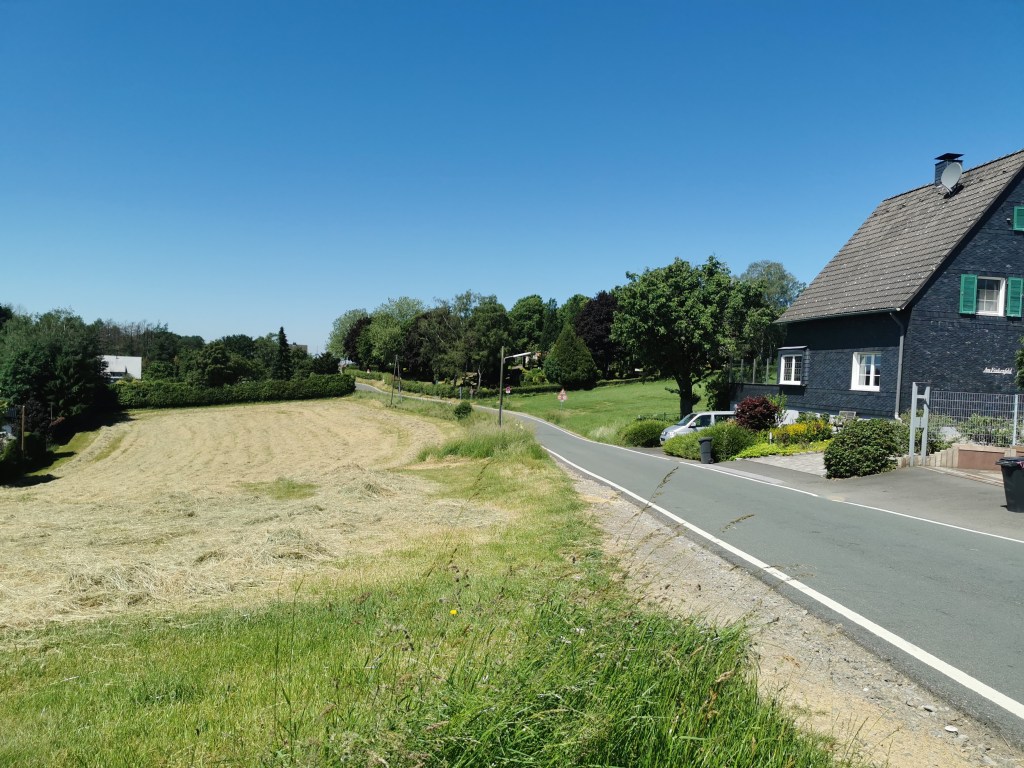 Seit Montag wurde das Training noch etwas seriöser gestaltet. Ein 3er Block stand an. Tag 1 mit 4, Tag 2 mit 5 Stunden und Tag 3 nach Status der Müdigkeit. Um es gleich vorweg zu sagen, es klappte ganz ordentlich, auch wenn es durch die plötzliche Hitze mir nicht unbedingt entgegen kam. Aber der Reihe nach. Montag rollte ich mit Gino zunächst in Richtung Himmelgeist und von dort nicht zur Rheinbrücke, sondern in Richtung Benrath und weiter gen Monheim und Hitdorf. Ich wollte nach Opladen cruisen um ein wenig der Balkantrase zu folgen. Dank Komoot rollte ich entspannt und flach bis zum Einstieg auf die Trasse. Die nächsten knapp 15 Km gingen stetig leicht bergan, immer der Trasse nach. Bergisch Neukirchen, Burscheid, Hilgen wurden passiert, erst in Wermelskirchen wurde die Trasse verlassen. Somit aber auch der Schatten spendende Wald. Nach Querung der A1 bog ich nochmals links ab, eine kleine Schleife mit tollem Ausblick und zusätzlichem Anstieg. Die Bank mit Fernblick war der ideale Platz für ein Päuschen.