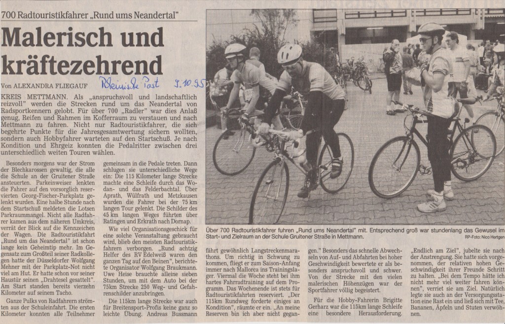 Irgendwie passte es zum Jahr 1995, dass ich am Ende der Saison bei der RTF „Rund ums Neandertal“ in Mettmann der Rheinischen Post Rede und Antwort stehen musste 😉