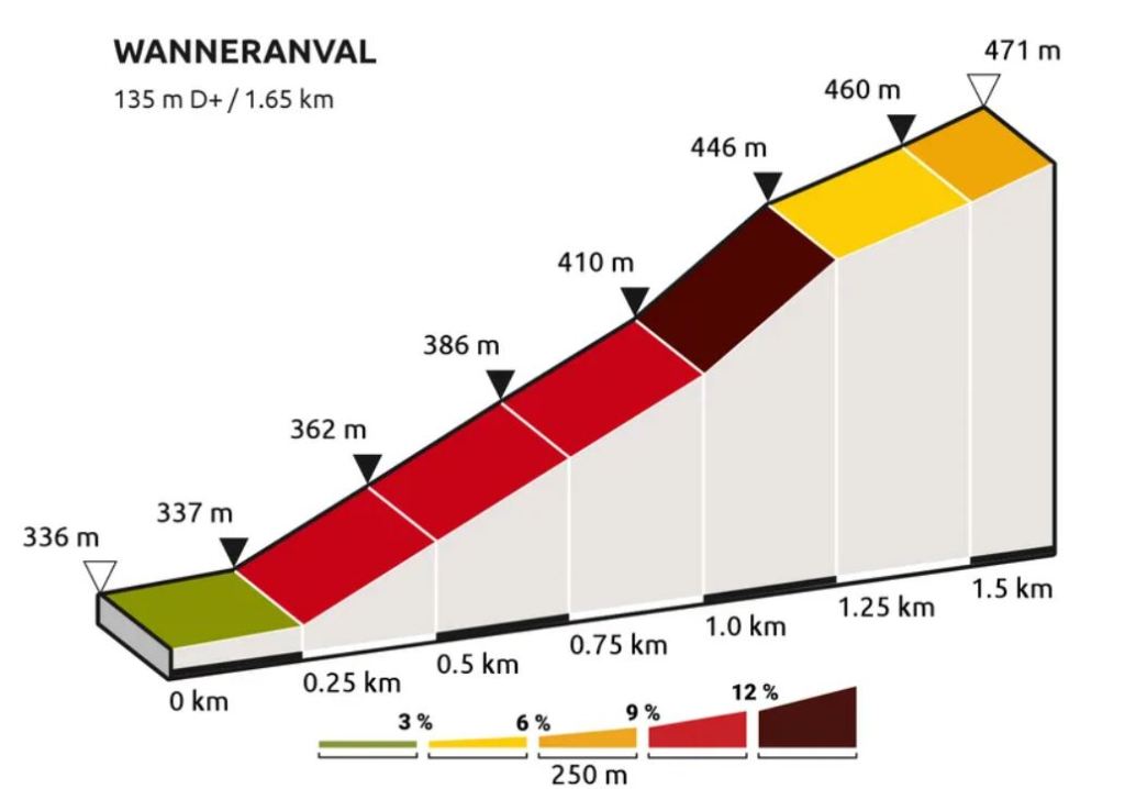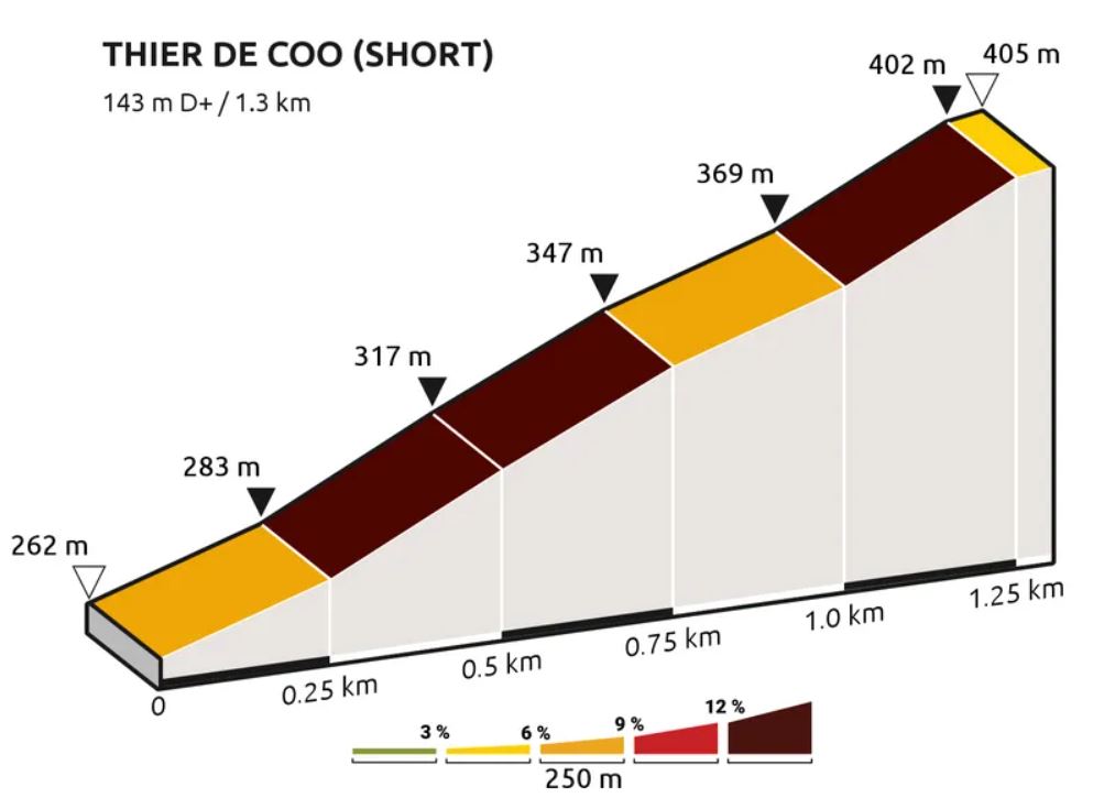 Den Rosier werde ich erstmalig auch von Spa aus fahren. Den L`Ancienne Barriere zur Hälfte über eine andere Zufahrt und den Stockeu über das Merckx Denkmal hinaus. Der Wanneranval und der Thier de Coo sind aber auch nicht zu verachten. Die drei Brocken folgen zwischen Km 86 und 102 direkt hinter einander. Der Rest ist von LBL bekannt: der Haute Levee und Rosier mit 10 Km Abfahrt zum Abschluß 🙂