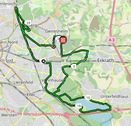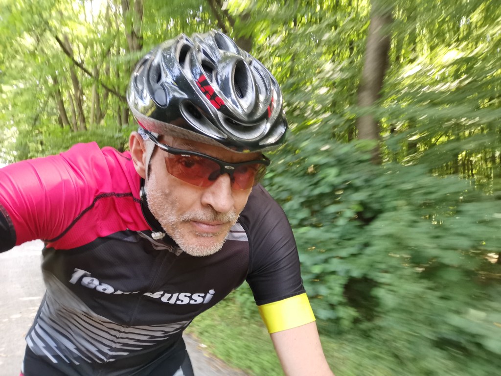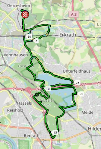 Die Ausfahrt ging durch die Düsselauen zum Unterbacher See. Dort kreuz und quer durch den Wald. Langsam und piano war der Plan, den ich aber gar nicht gebraucht hätte 😦 Es wäre gar nicht anders möglich gewesen. Kondition weg, Muskeln weg, Gewicht zwar wieder da, aber ihr wisst schon: Fett. Das Hauptproblem ist aber die Luft. Auch wenn es ja klar war, hätte ich diese Auswirkung niemals gedacht. Nach 76 min war ich froh, wieder a la Casa zu sein. Die Minimuskulatur komplett hart. Ich war fix und fertig. Wahnsinn >Covid Totalschaden<