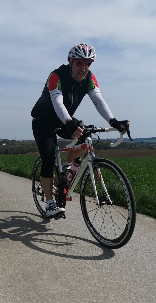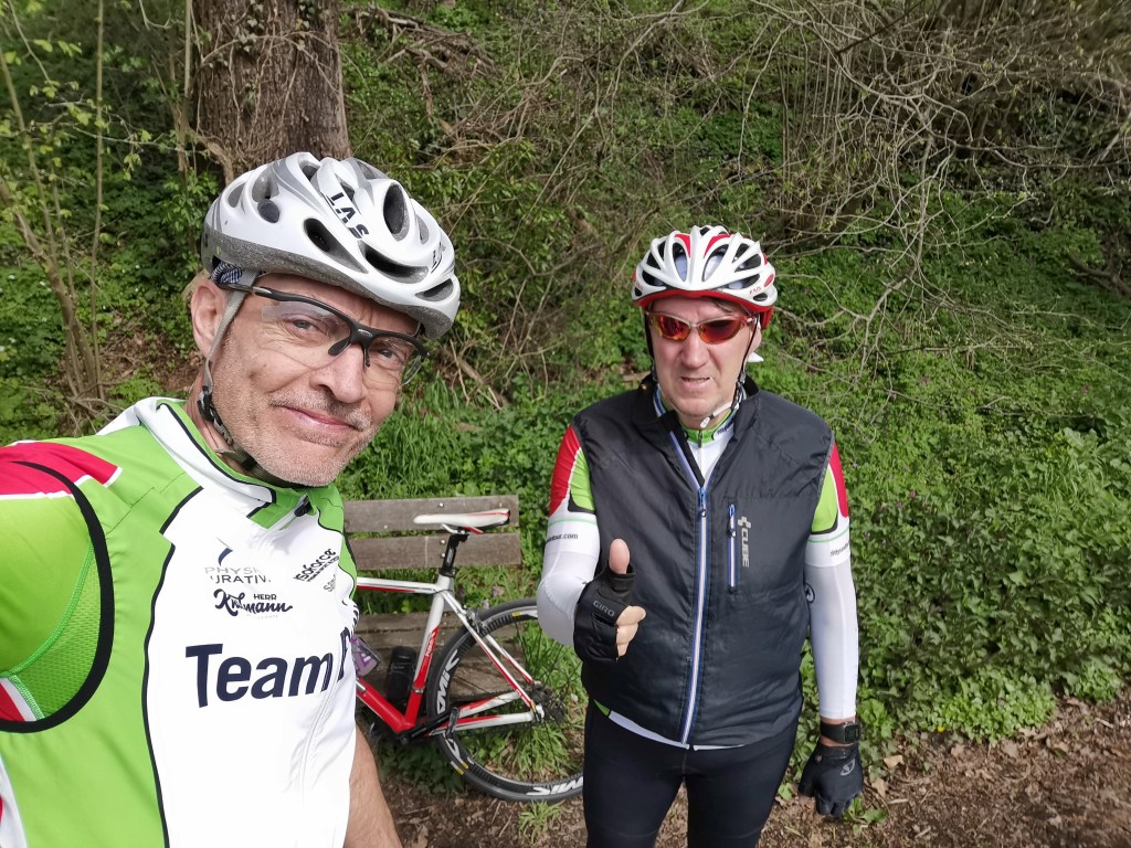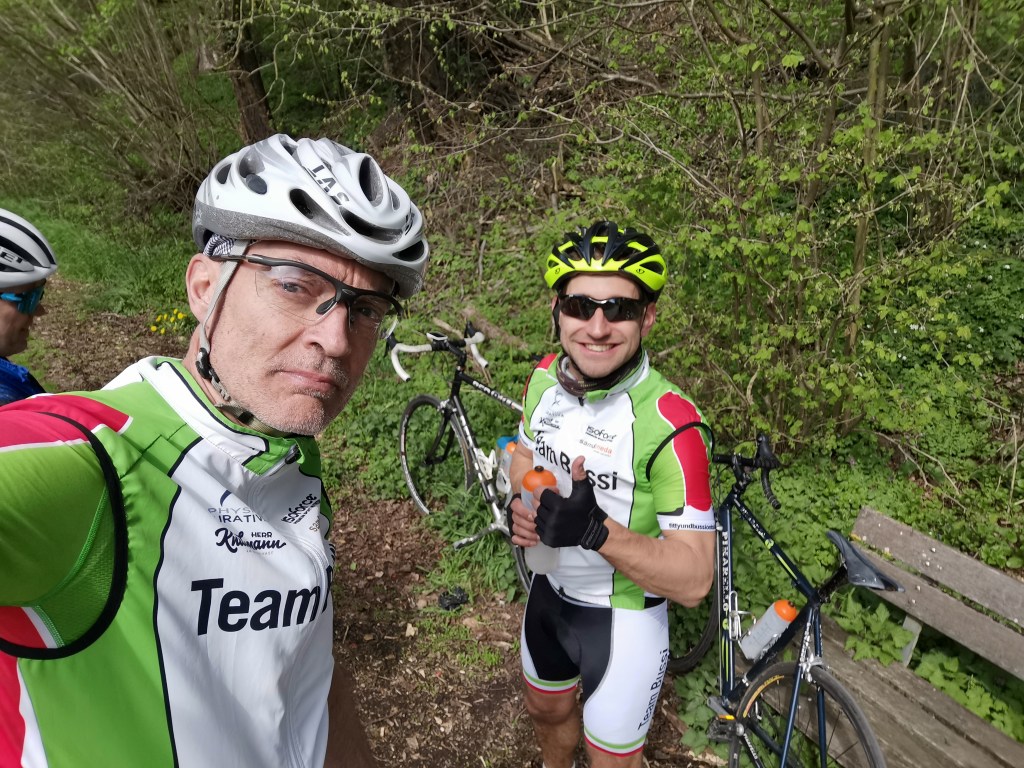 Am Samstag war es soweit. Die Teamkleidung für Sebastian war geliefert und der Termin für die Übergabe wurde direkt mit einer gemeinsamen Ausfahrt festgemacht. In der Team WhattsApp Gruppe fand auch Pit Interesse an der Ausfahrt, so dass wir zumindest zu dritt am Start waren. Aber Pit konnte auch Bernie überreden, was mich wirklich gefreut hat. Sollte es doch auch den ein oder anderen Hügel geben 😉 Und wer Bernie kennt, der weis……….. Aber das ist eine andere Geschichte 😉