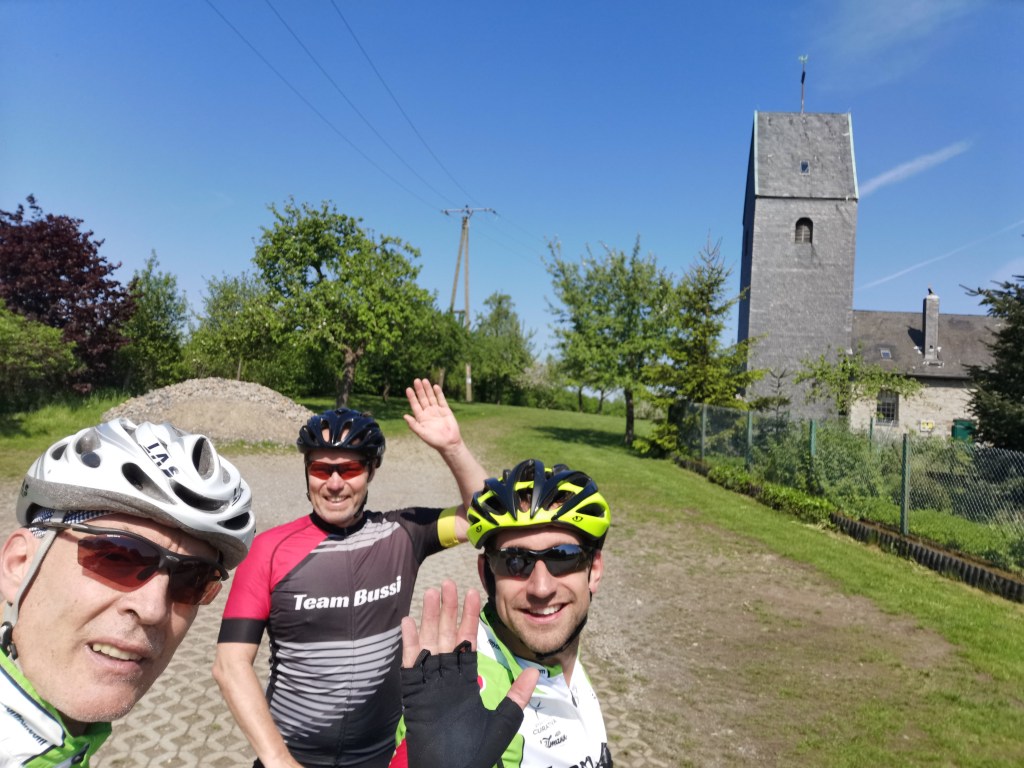 Die nächste Ausfahrt ließ wieder lange auf sich warten. Aber dafür ging es zu dritt zur >Windrather Kapelle< Begleitet von Pit -Teilweise- & Monzi cruisten wir wieder durch die Felder. Diese Tour sollte Monzi etwas mehr fordern, was auch gelang. Gab es bei der ersten gemeinsamen Ausfahrt noch ein paar Bernie Stops hieß es diesmal eher durchfahren. Gespickt waren die 84 Km mit 865 Hm, was schlussendlich nur zu schaffen war durch einen strategischen Getränkestop am Sportplatz „Zur Waldkampfbahn“