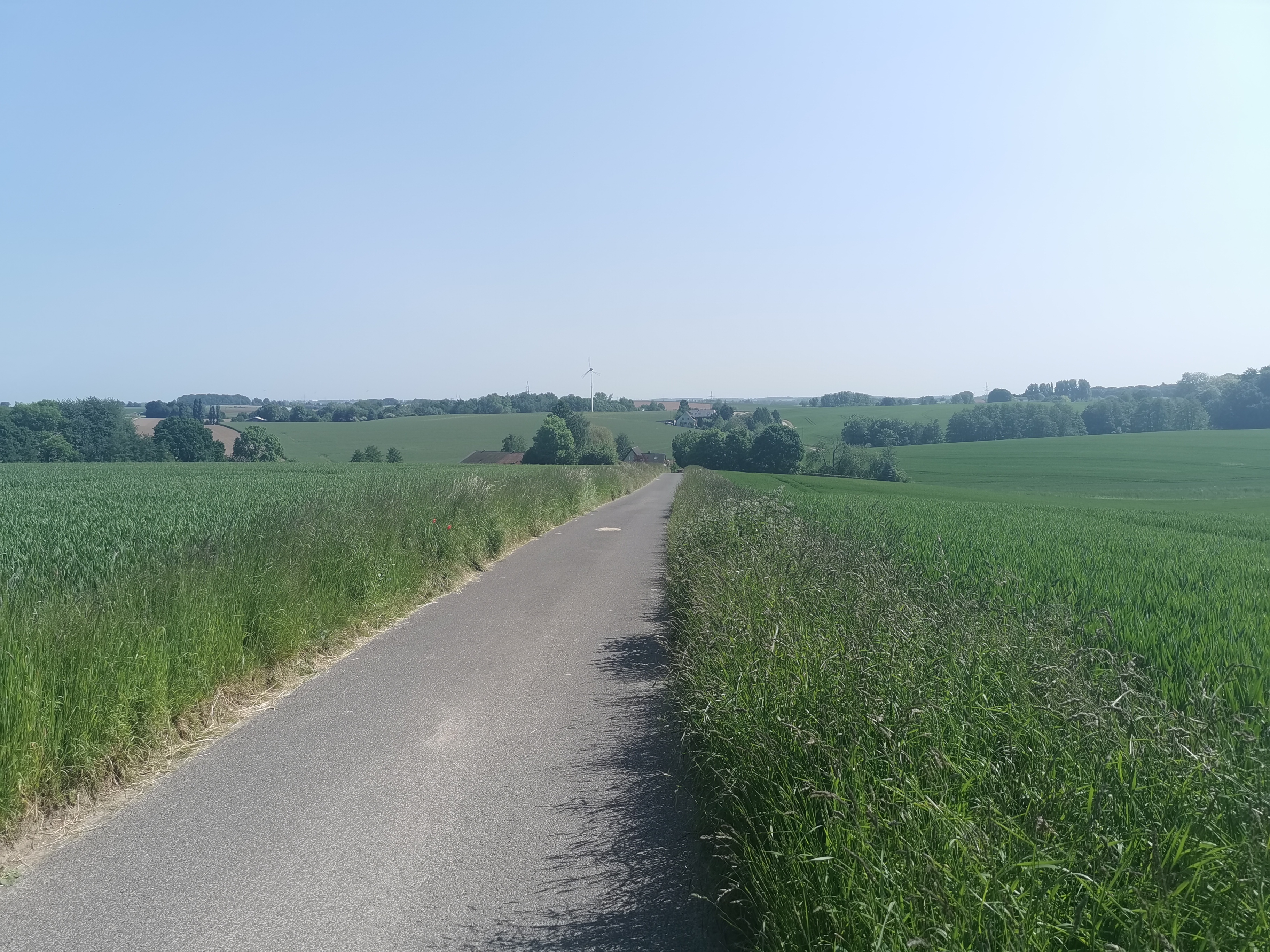 Die restlichen 50 Km führten mich zunächst durchs Hespertal leicht bergan in Richtung Hefel, wo ich kurz darauf in die Eintrachtstraße abbog. Hier war ich tatsächlich wieder komplett alleine unterwegs und genoß den anfangs flachen Teil bis zum Beginn des Anstieges ins Gewerbegebiet. Über die Siemensstraße gelangte ich LKW frei 😉 schlußendlich auf dem Panorama Radweg. Diesen nutze ich nochmals zur Stärkung mit Gel & Flüssigkeit, bevor ich mich in die Abfahrt nach Neviges stürzte. Einfach herrlich. Nächstes Ziel Windrather Kapelle und Windrather Tal. Altbekannt, aber immer wieder schön zu fahren. Ganz besonders bei diesem Wetter. Aprath, Düssel, Hahnenfurth und das Neandertal brachten mich wieder nach Gerresheim. Ganz nebenbei hat es tatsächlich für 1088 Hm gereicht, auch wenn ich für die 100 Km noch einen Kringel im Dorf drehen musste. Die Runde >Ruhrtal< hat mir neben jeder Menge Spaß noch etwas verdeutlicht: