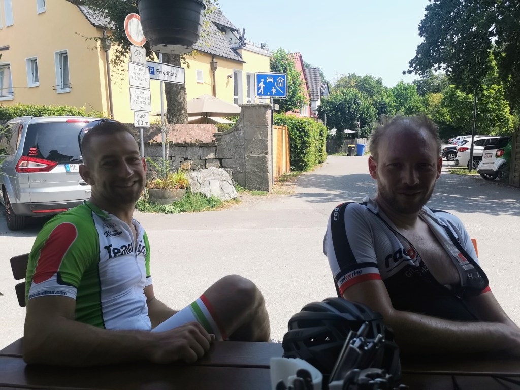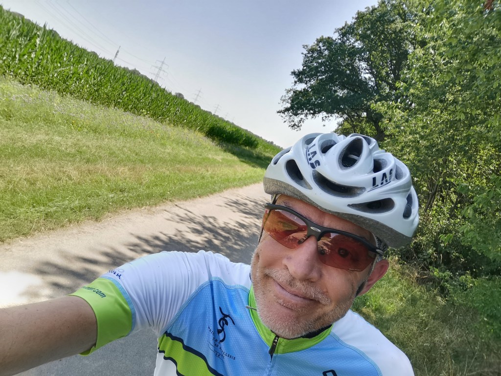 Dann war leider wieder urplötzlich Schluß mit Radeln. Keine Zeit, zuviel und zu lange Arbeiten, private Termine usw. und somit wieder 13 Tage null km. Nicht wirklich förderlich. Beim Wiedereinstieg am Samstag Nachmittag hatte es geschmeidige 35 Grad 😦 genau die richtige Temperatur, um wieder auf Touren zu kommen. Ich wollte aber unbedingt wieder etwas tun, war ich doch am nächsten Tag zum Team Ride mit Monzi & 2 Gästen verabredet 🙂 Somit führte der >Xte Neustart< bereits nach wenigen Km dazu, die Runde zu verkürzen. Saft und Kraftlos, ohne Druck, mit leerem Kopf und schwachen Beinen rollte ich wieder nach Hause. Kein guter Restart.