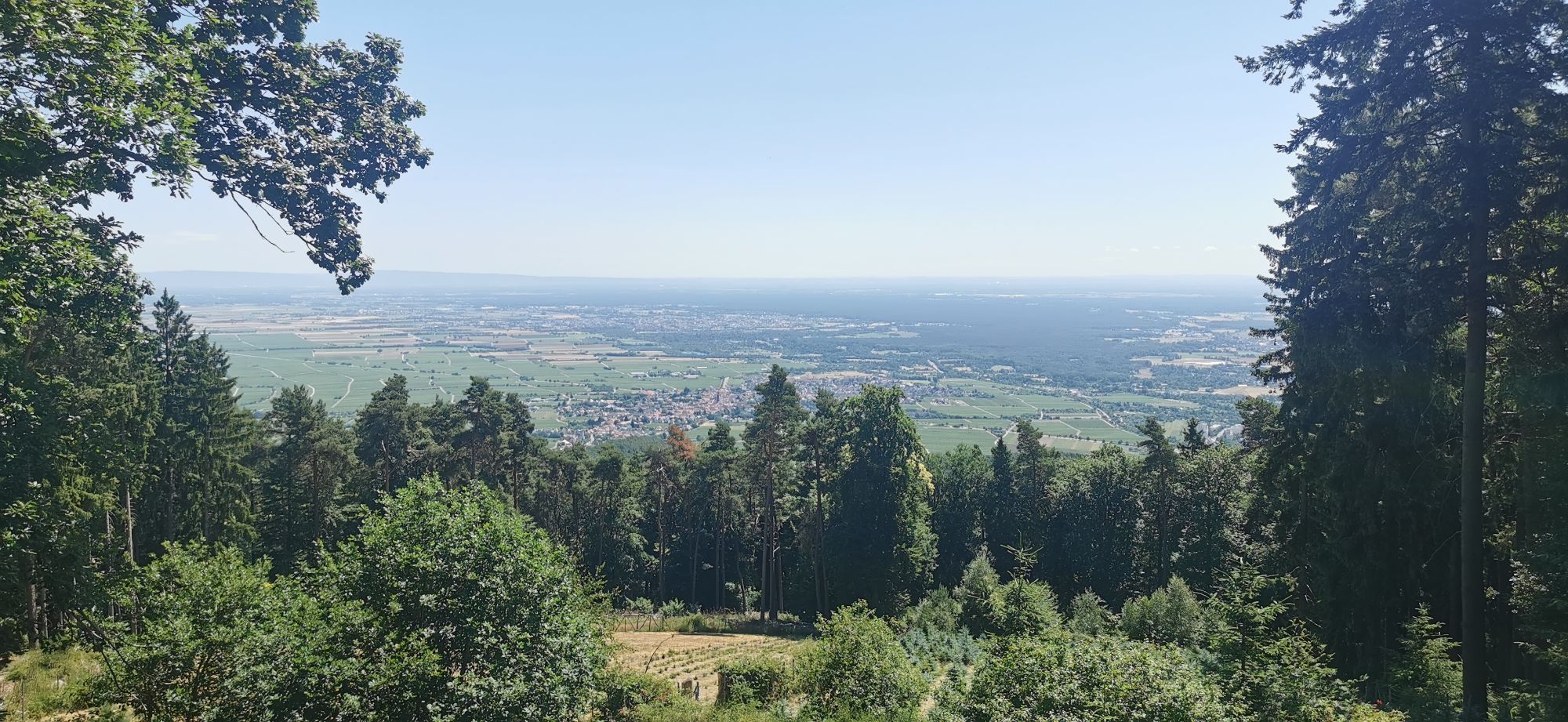 Mein Plan war es jetzt bis Bad Dürkheim zu fahren. Weitere 25 Km mit viel Auf und Ab mitten durch den Pfälzer Wald. Ich schaltete den Überlebensmodus ein, rollte los und hatte auf der folgenden Abfahrt wieder mit meiner angespannten Muskulatur zu kämpfen. Die Natur hatte mich wieder und mit jedem absolviertem Km und vor allen Dingen Hm versuchte ich positive Vibes zu generieren. Das gelang allerdings nur bedingt. Lediglich die großartige Strecke zauberte mir immer wieder ein Grinsen ins Gesicht. Schließlich erreichte in nach einer gefühlten Ewigkeit Bad Dürkheim und fand auch zügig ein Eiscafe, wo ich mir Getränke und eine Waffel mit Joghurt und Obst bestellte.